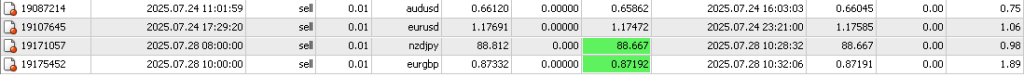 Hello, just have time to update..here result trading from 24th, jul’25 until now
